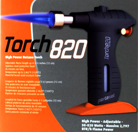 HP820-это бутановая горелка высокой мощности с регулируемой мощностью 50-820 Вт с регулируемой длиной пламени до 12 см и температурой до 1350 ° C (2462 ° C).