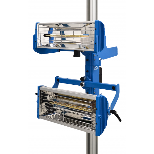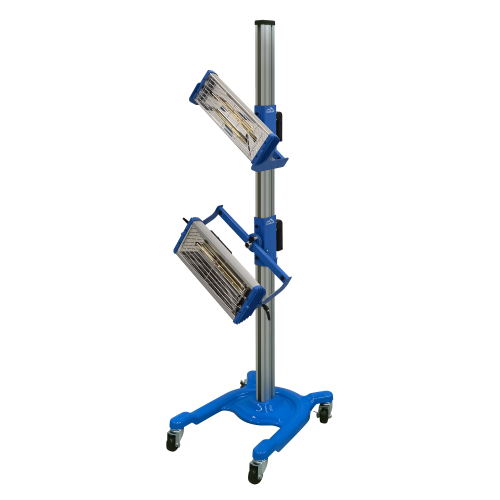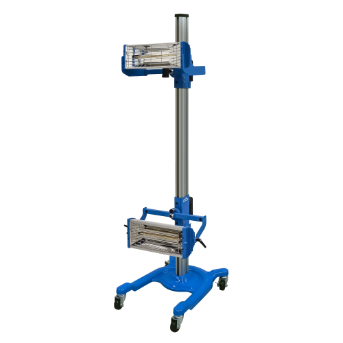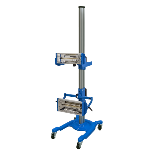 Мобильная установка Trommelberg IR2L Standard с 2 кассетами и излучателями в области коротковолнового инфракрасного диапазона для высушивания двухкомпонентных лакокрасочных и подготовительных материалов в процессе ремонта автомобильных покрытий. Благодаря использованию коротковолнового ИК-диапазона достигается полное высыхание материалов за более короткое время. Использование ИК-высушивания материалов, особенно в процессе точечного ремонта, обеспечивает существенную экономию ресурсов и значительно ускоряет процедуру ремонта как на этапе подготовки, так и на этапе сушки финишного покрытия.